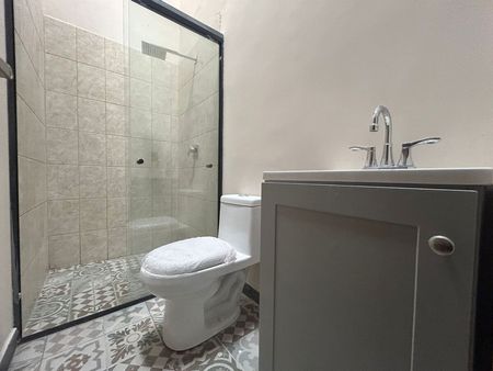 Inmueble de un nivel, recién remodelado, cuatro estudios y un departamento, cada estudio con baño completo y cocina integral, el departamento tiene una recámara con clóset y dos baños completos, sala-comedor, cocina integral, terraza y patio central.