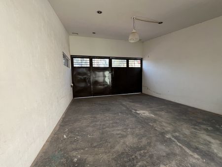 La bodega o taller mide 125 m2 y tiene 4 metros de altura; además de un tapanco de 12 metros cuadrados; cuenta con entrada independiente y también puedes tener acceso por adentro de la casa.