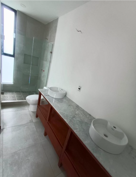 Recámara principal con vestidor, baño completo y doble lavabo