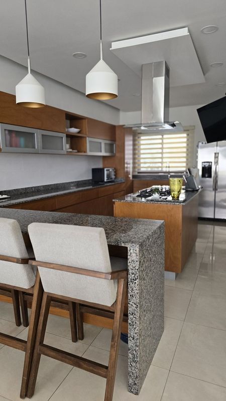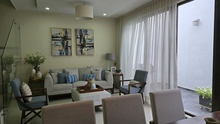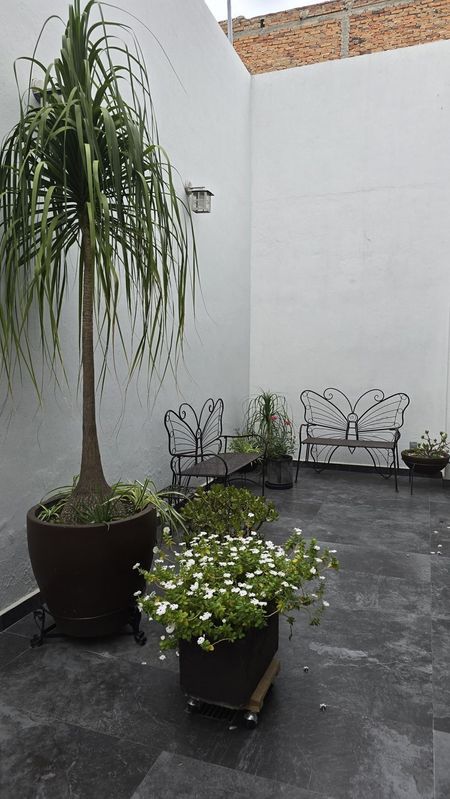 Construida en 3 niveles, Planta baja, recibidor, sala, comedor, cocina integral, con barra desayunadora, baño completo, patio de macetas.