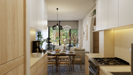 - Cocina con cubierta de ingeniería, resistente al agua