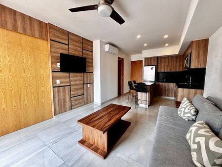 Está ubicado en el piso 4 y cuenta con una recámara con baño completo más medio baño de vistas. Terraza con bonitas vistas, cocina integral y área de sala y comedor.