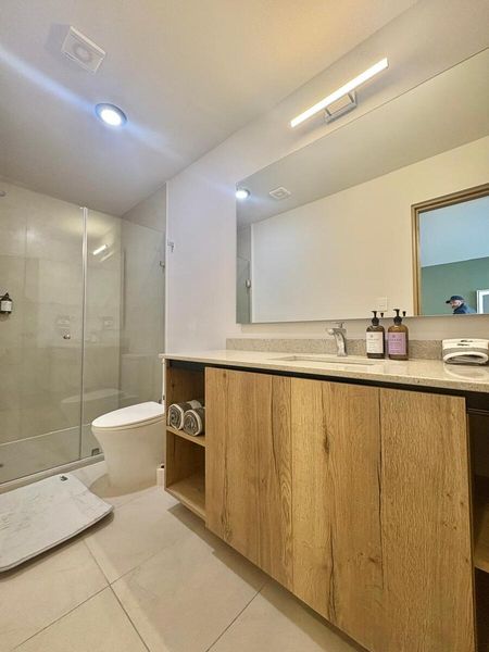 Se encuentra en el piso 6, tiene una recamara con aire acondicionado y closet muy amplio, un baño completo, cocina con cubierta de cuarzo blanco, totalmente equipada, sala comedor, área de lavado con centro de lavado, y cochera para un auto.