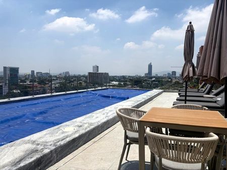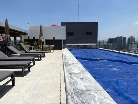 Las amenidades se encuentran en el piso 12, y tiene alberca, gimnasio, una terraza padrísima con una excelente vista la ciudad.