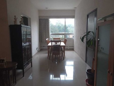 Excelente departamento en PB con vista a los jardines, acogedor, techos altos, con mucha luz, funcional, 3 recamaras, 2 baños, cocina, cuarto de lavado, calefacción hidrónica, 2 estacionamientos, bodega, vigilancia. Areas comunes: Alberca, gimnasio, jacuzzi, sauna, ludoteca, salón de usos múltiples. Excelente ubicación con fácil acceso a la avenida y vivir sin ruido. Impecable opción en muy buen estado de conservación