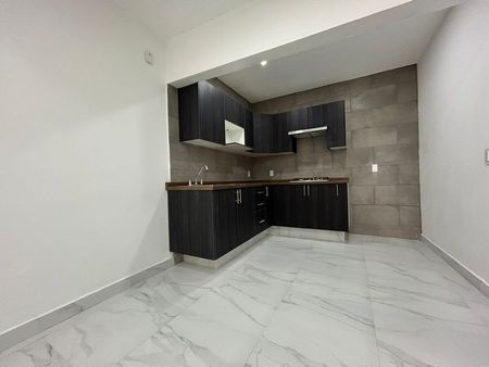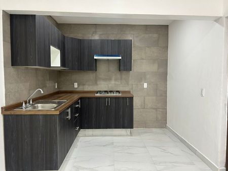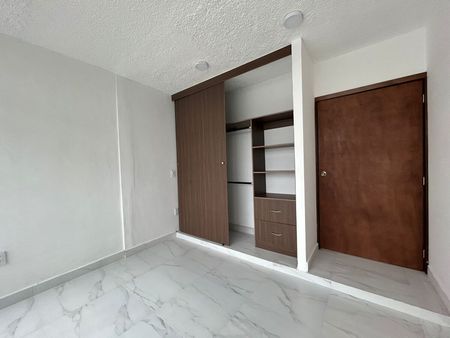 Departamento en planta alta recién remodelado con dos recámaras con clóset, balcón, área de sala-comedor, cocina integral con estufa, campana y tarja, un baño completo y patio de servicio y lavado. el departamento cuenta con puerta de seguridad de entrada.