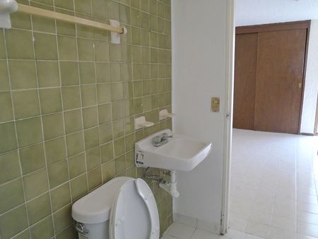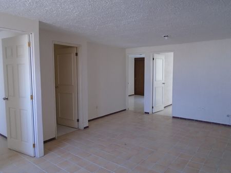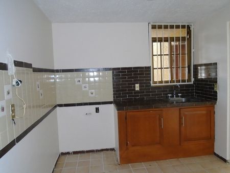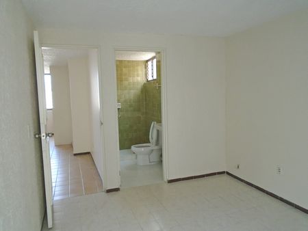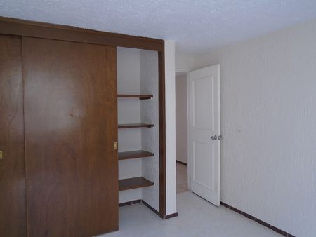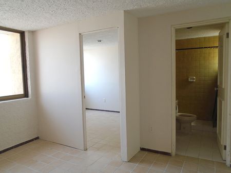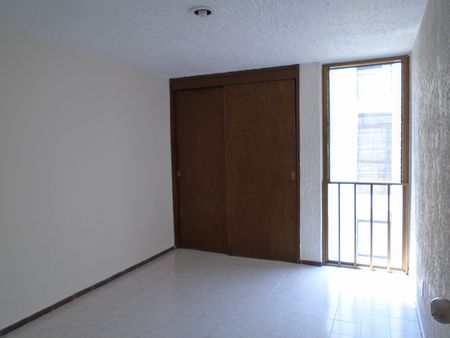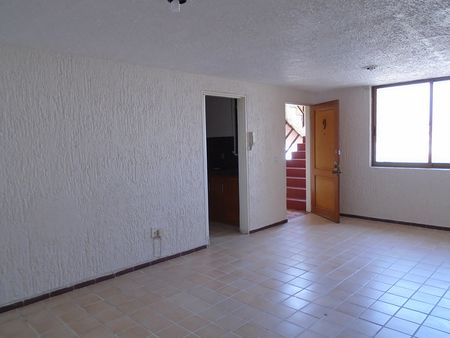 Departamento en segundo piso, dos recámaras con clóset, la principal con baño completo, estudio, dos baños completos, área para sala-comedor, cocina con pretil y alacenas, área de lavado y servicio conexión para cilindro de gas y un cajón de estacionamiento.