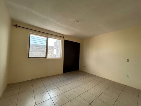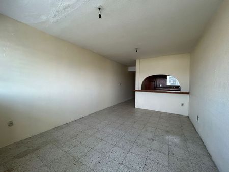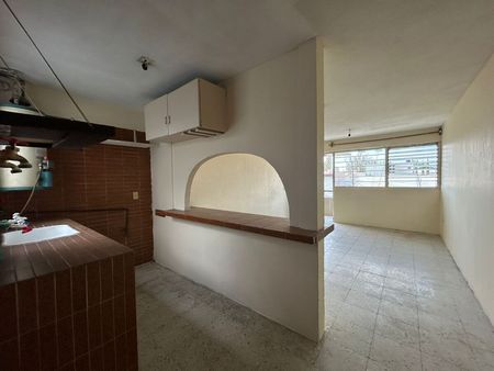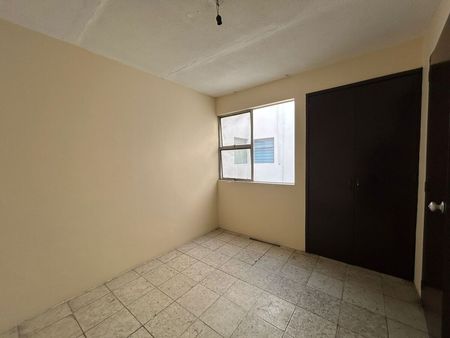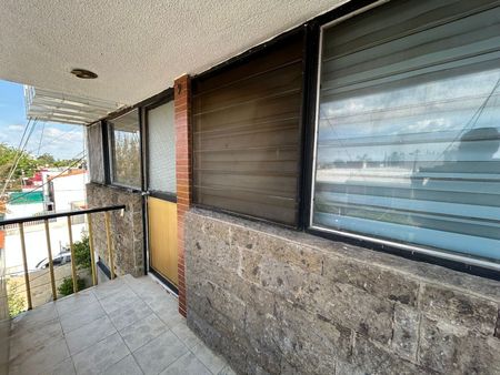 Departamento en segundo piso, dos recámaras con clóset, un baño completo, sala comedor, cocina semi integral sin estufa, área de patio de lavado y tendedero en la azotea y tanque de gas estacionario. No cuenta con estacionamiento.