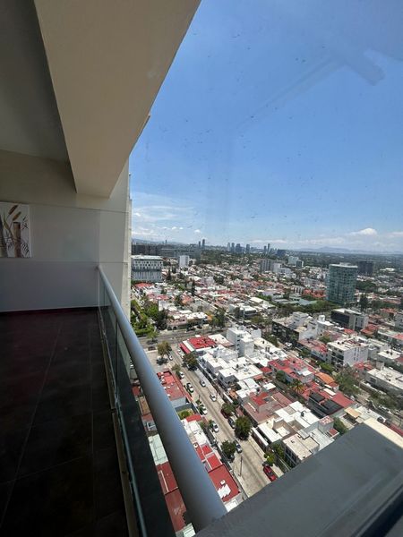 El edificio cuenta con terrazas de uso común, gimnasio, alberca y vigilancia 24 horas.