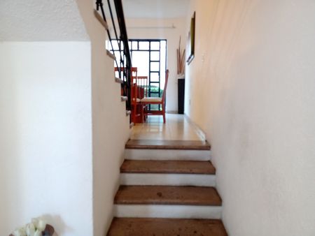 La Casa está distribuida en 4 niveles con amplios espacios en cada uno, la planta baja cuenta con sala y medio baño para visitas, 1er nivel comedor, cocina integral y un pequeño jardín interior, 2do nivel Recamara Principal con Closet, baño completo y un pequeño Balcón; 3er nivel Área de TV/ Estudio, Recámaras con closet y baño completo; 4to nivel Recamara con closet y cuarto de lavado. La Casa cuenta con portón automático, cochera para 1 auto, boiler, calentador solar, tanque estacionario, tinaco, cisterna.