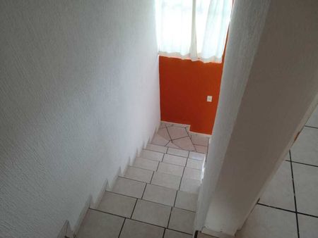 Casa dos niveles, tres recámaras con clóset, un baño completo, sala comedor, cocina Integral con estufa, patio de servicio, instalación para cilindro de gas y cochera para un auto.