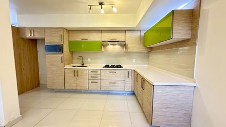 Casa habitación en condominio privado, dos habitaciones, la principal con baño completo, clóset-vestidor, aire acondicionado y persianas automáticas, la recámara secundaria con clóset y persianas, en distribuidor un baño completo, área para sala comedor con persianas y con aire acondicionado, medio baño para visitas, cocina integral con estufa, campana y tarja, área de servicio y lavado techado, tanque de gas estacionario y cochera para un auto. El coto cuenta con entrada con portón eléctrico y con terraza de uso común.
