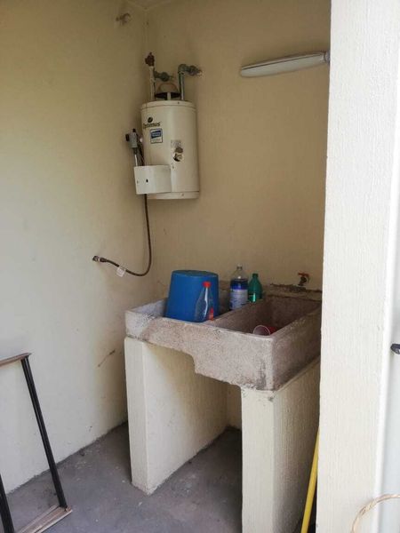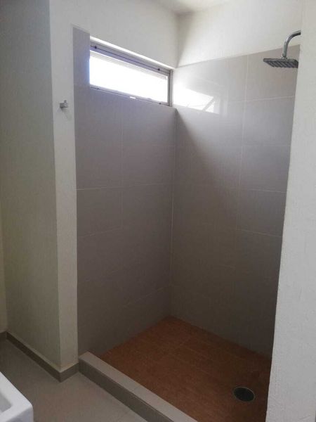 Casa de dos niveles, tres habitaciones, la principal con baño completo, un baño completo en distribuidor, área de sala-comedor, cocina integral con estufa y campana, medio baño de visitas, terraza con césped sintético, área de lavado, tanque de gas estacionario y estacionamiento para dos autos.