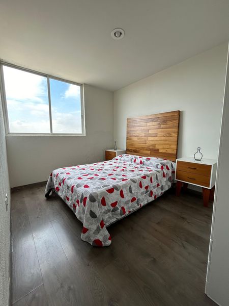 El departamento se encuentra ubicado en el piso 12, con sala comedor, cocina integral con barra desayundadora, 2 recámaras, una de ellas con closet, 1 baño completo, y 1 estacionamiento en subterráneo.