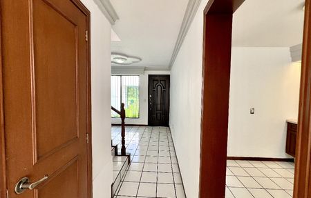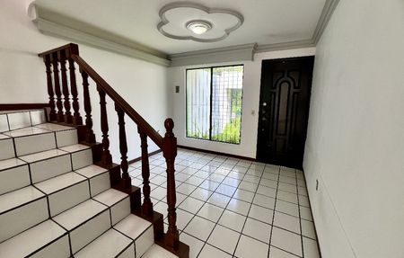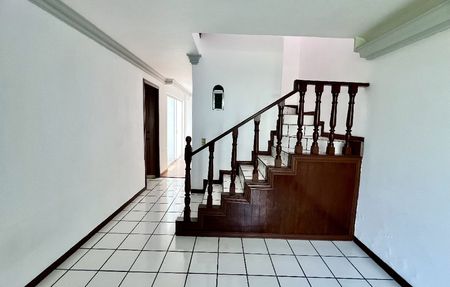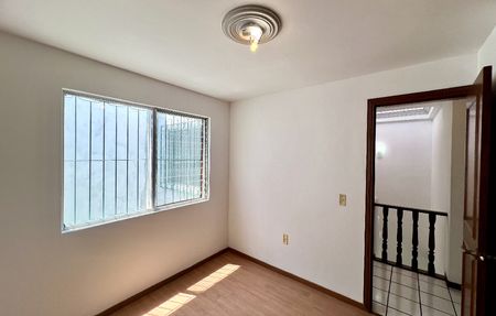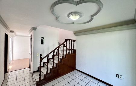 Casa habitación de dos niveles, a un costado de “Plaza Galerías”, tres habitaciones con clóset, la principal con baño completo, baño completo compartido, medio baño de visitas, área para sala comedor, amplia cocina integral con estufa, campana y barra, cuarto de lavado, patio de servicio, tanque de gas estacionario y cochera para dos autos.