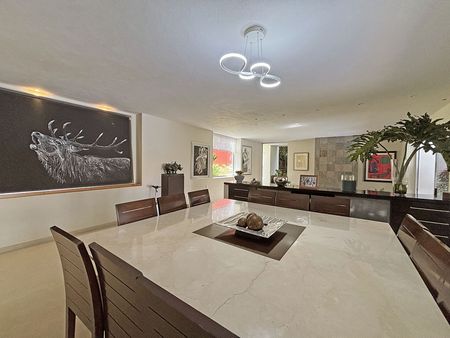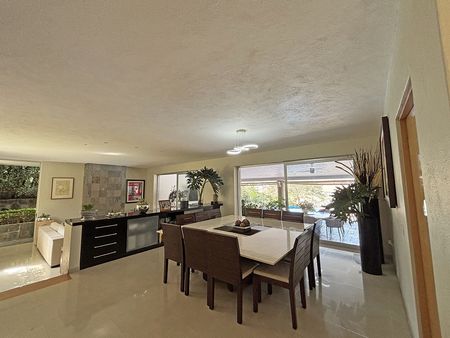 EN PLANTA BAJA, EL ÁREA DE SALA COMEDOR SE INTEGRA A LA AMPLIA TERRAZA, CON BAR Y ÁREA DE BILLAR, ASÍ COMO LA ALBERCA Y ZONA DE ASADORES. LA COCINA CUENTA CON BARRA DE GRANITO Y DESPENSA, SE INTEGRA A TODA ESTA ZONA; TIENE TAMBIÉN ESTUDIO CON POSIBILIDAD DE SER REÁMARA EN PLANTA BAJA.