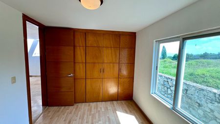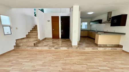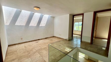 Casa habitación en condominio " Bosque Real " , con tres recámaras con clóset, la principal con vestidor y baño completo, un baño completo en distribuidor, estar de TV, sala-comedor, cocina integral sin estufa, medio baño de visitas, área de servicio y lavado, jardín y cochera para dos autos. Amenidades del coto: Caseta de seguridad con acceso controlado, casa club con terraza, alberca, salón de usos multiples, gimnasio, medios baños y área de juegos infantiles.