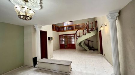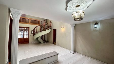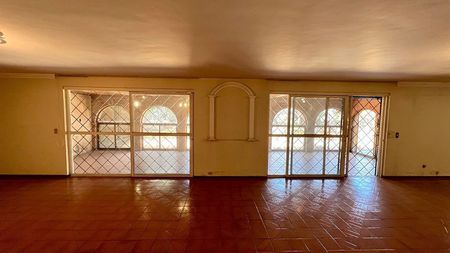 Casa en zona residencial dos niveles, cuatro recámaras, la principal con baño completo, vestidor, vapor y salón de juegos, segunda recámara con baño completo y vestido, dos recámaras sin clóset y baño compartido completo con mingitorio; recibidor, sala, comedor, cocina integral sin estufa, alacena, cava de vinos, cuarto de lavado con baño completo, dos medios baños comunes, terraza cerrada con acceso a jardín con medio baño.