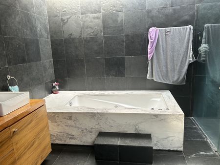 3 recámaras, la principal con walkin clóset y baño con tina y regadera con cancel